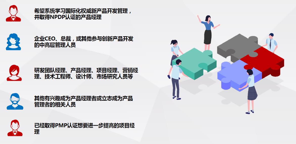 1.權(quán)威國(guó)際認(rèn)證:NPDP認(rèn)證是產(chǎn)品管理領(lǐng)域歷史較久、知名度較高的認(rèn)證。是新產(chǎn)品開(kāi)發(fā)領(lǐng)域唯一權(quán)威的國(guó)際認(rèn)證
