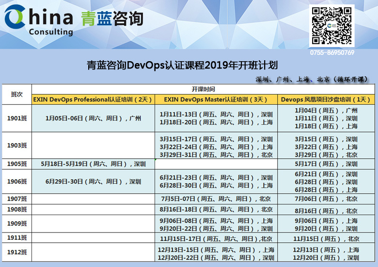 2019年也是學習依舊的一年,關(guān)于DevOps認證課程安排,青藍咨詢已為您完美制定,北上廣深任君選擇。