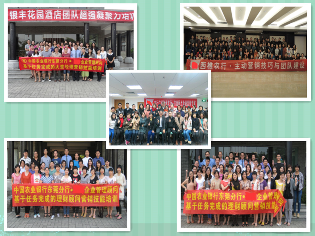 2011年7月,主導(dǎo)中國(guó)農(nóng)業(yè)銀行嘉興市分行《網(wǎng)點(diǎn)服務(wù)營(yíng)銷提升項(xiàng)目》,完成嘉興市分行、嘉善支行、南湖支行、平湖支行、海寧支行等22個(gè)標(biāo)桿網(wǎng)點(diǎn)培訓(xùn)與咨詢。