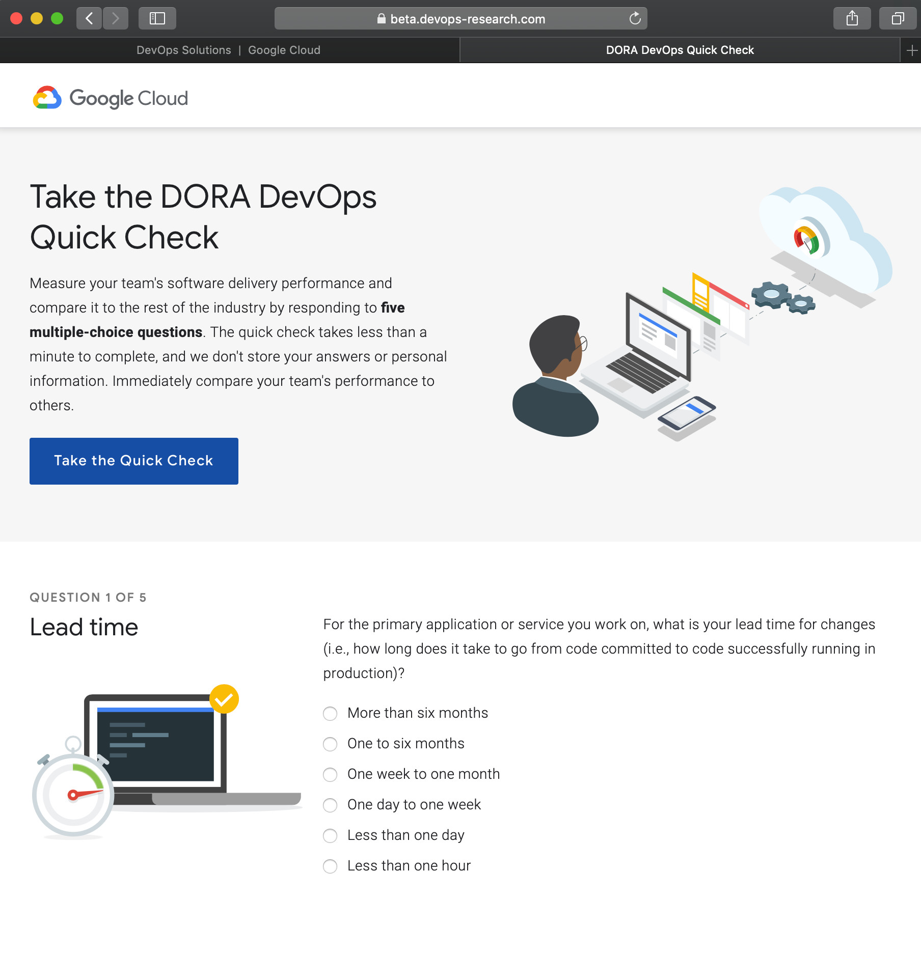 > 在Google的網(wǎng)站上做極簡版DevOps行業(yè)基礎(chǔ)測試,它是6年行業(yè)調(diào)查結(jié)果數(shù)據(jù)庫的首次對外開放。
