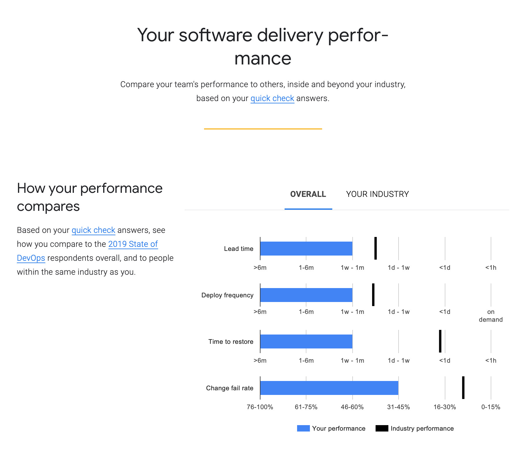 這是我寫作本文想要回答的核心問題。如果你能夠度量自己的四個(gè)黃金指標(biāo)了,也能夠隨時(shí)拿出一組確切的數(shù)據(jù),我們就能做行業(yè)基準(zhǔn)測試比較了。